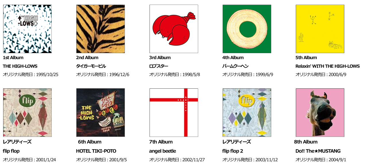 | THE HIGH-LOWS 結成25周年 リマスター紙ジャケットCD・アナログ盤全10作品購入特典&絵柄決定! |